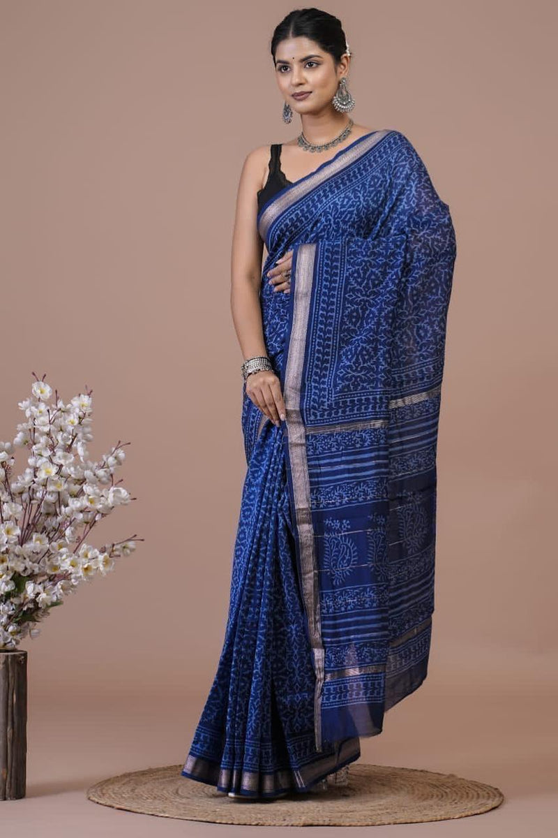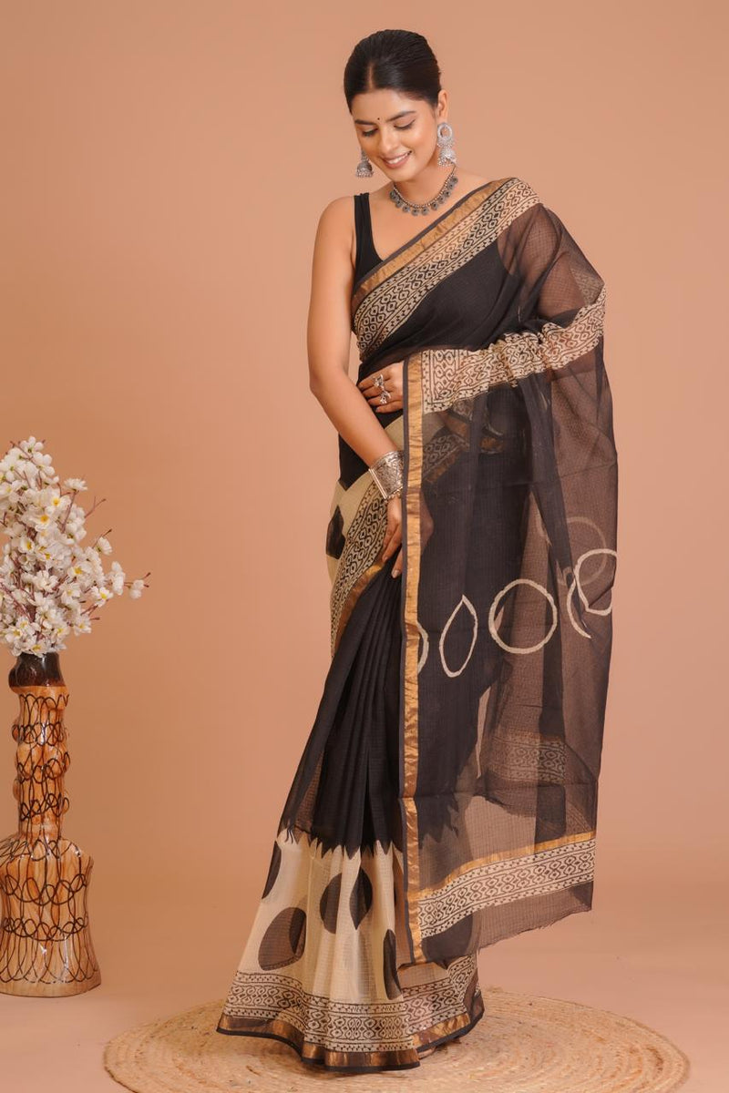 Designer Hand Block Printed Kota Doria Silk Saree(KDSYS12)