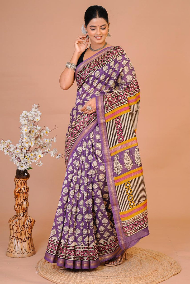 DESIGNER HAND BLOCK PRINTED MAHESWARI SILK SAREE ( MSYS15)