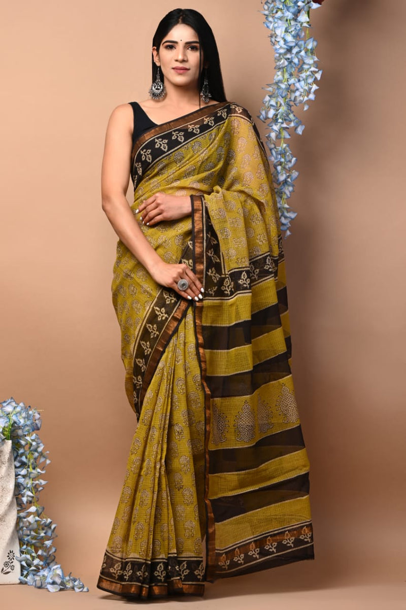 Designer Hand Block Printed Kota Doria Silk Saree(KDSYS12)