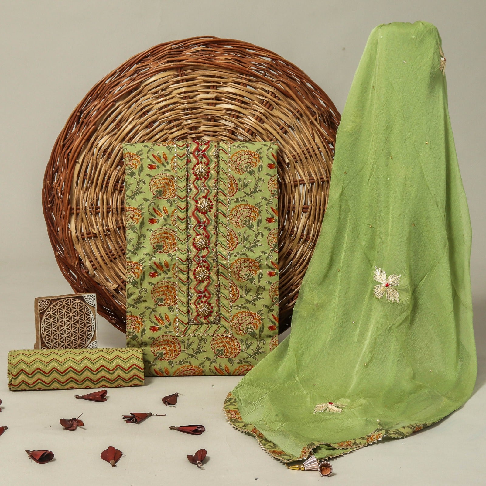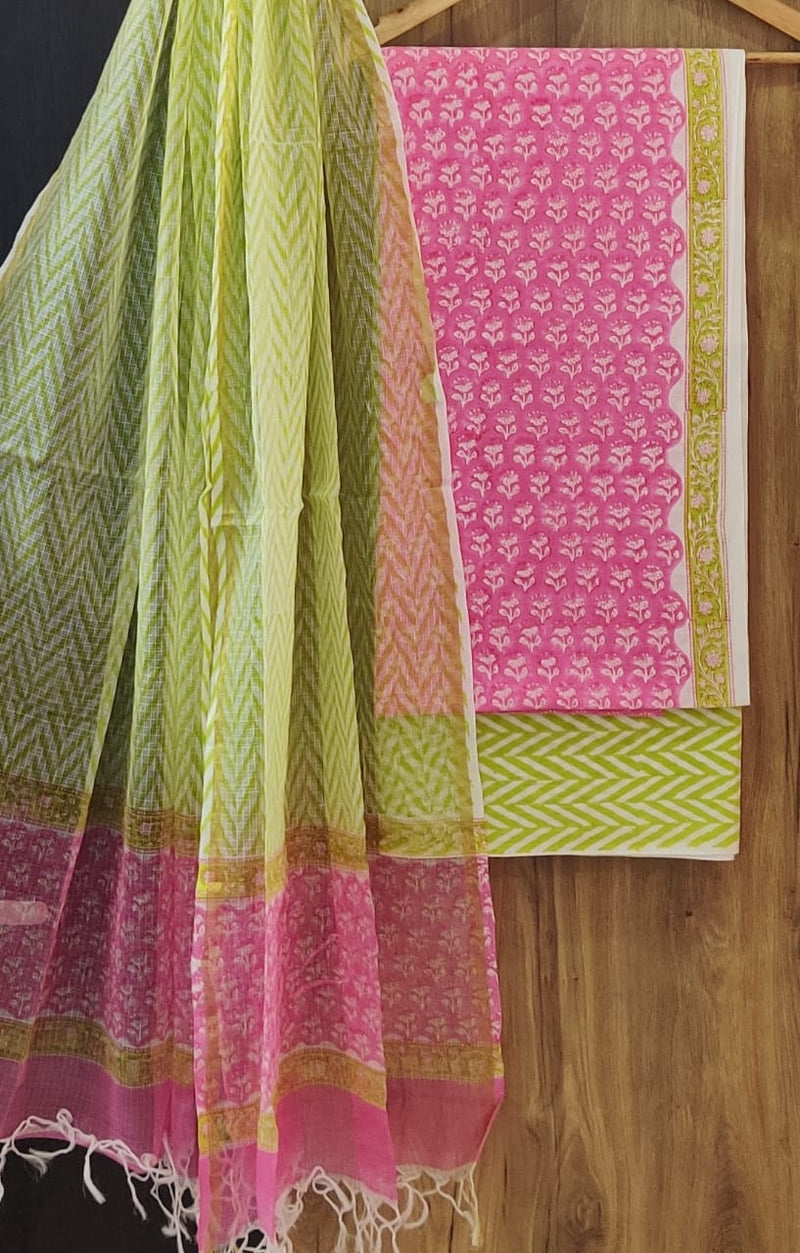 DESIGNER HAND BLOCK PRINT PURE COTTON SUIT MATERIAL WITH KOTA DORIA DUPATTA (3CKDYS62)