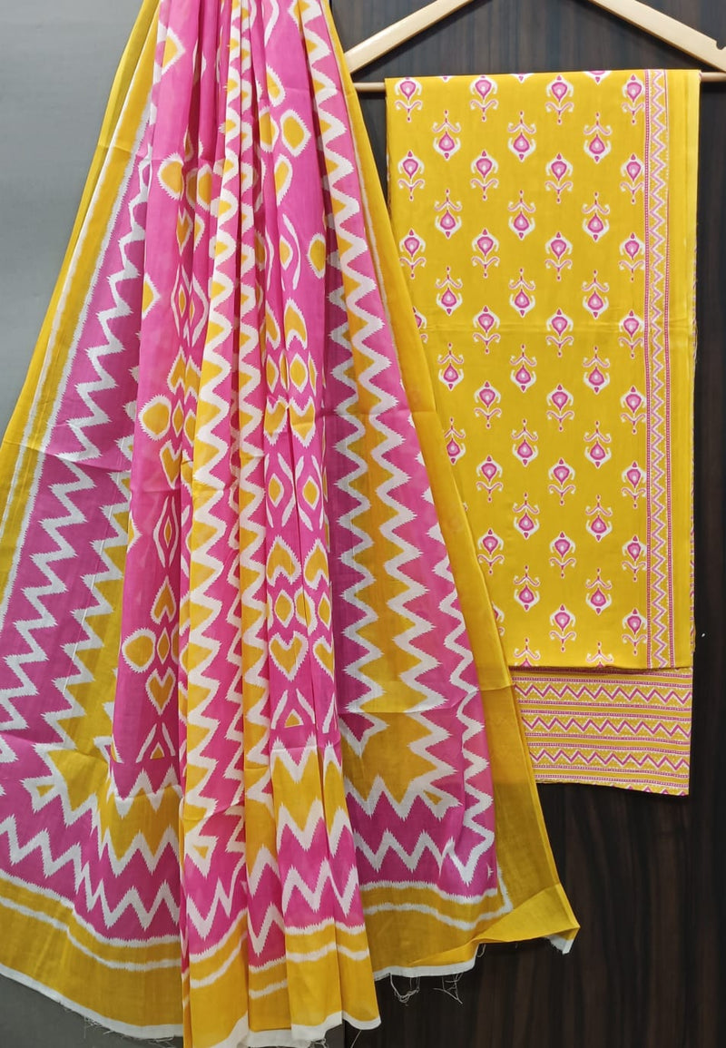 YUVI STYLE HAND BLOCK PRINT PURE COTTON SUIT WITH COTTO MULMUL DUPATTA (MALYS253)