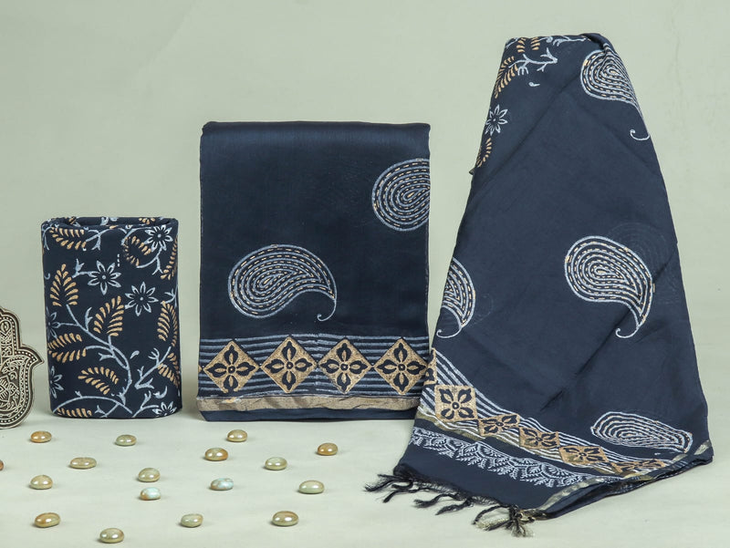 YUVI STYLE HAND BLOCK PRINT PURE COTTON SUIT WITH COTTO MMUL DUPATTA (MALYS154)