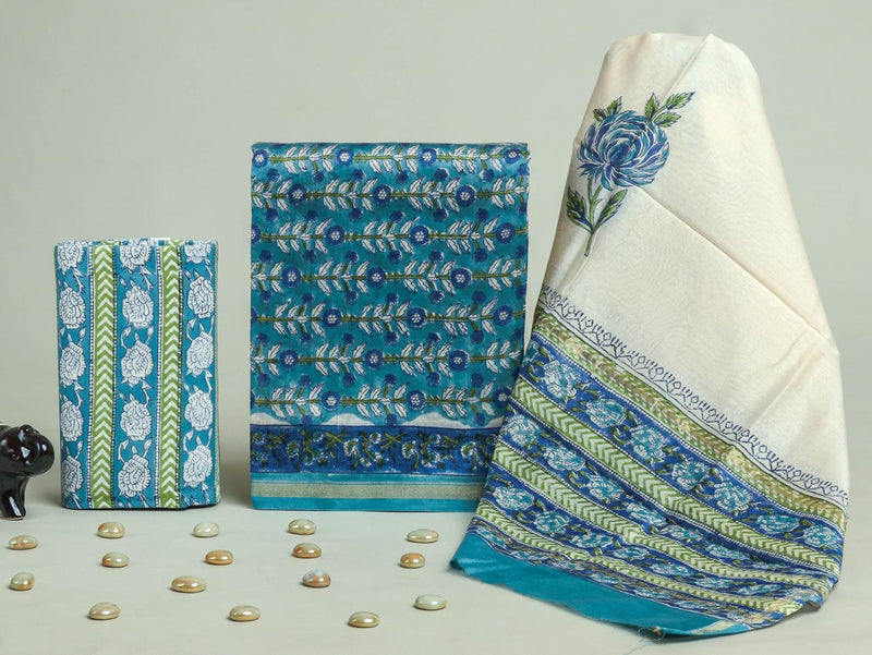 Designer Hand Block Print Chanderi Silk Suit set with Premium Chanderi Dupatta (CHDYS33)