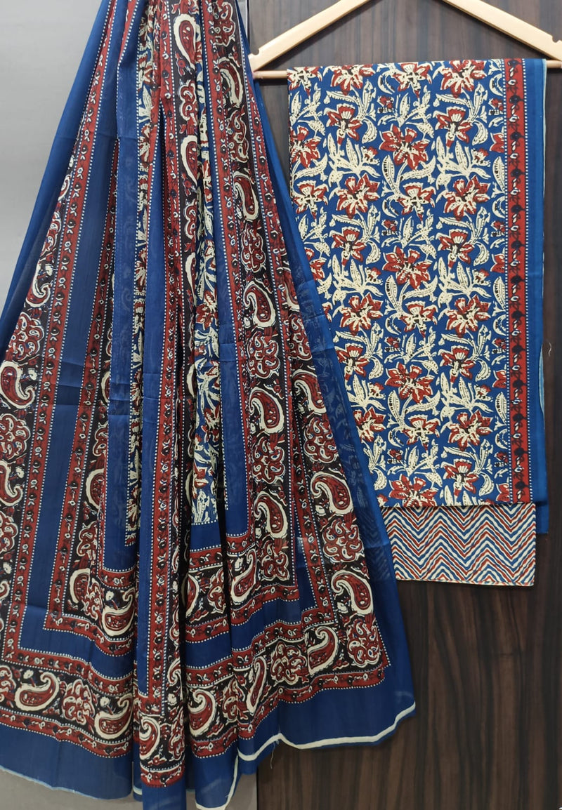 DESIGNER HAND BLOCK PRINT PURE COTTON SUIT MATERIAL WITH KOTA DORIA DUPATTA (3CKDYS68)