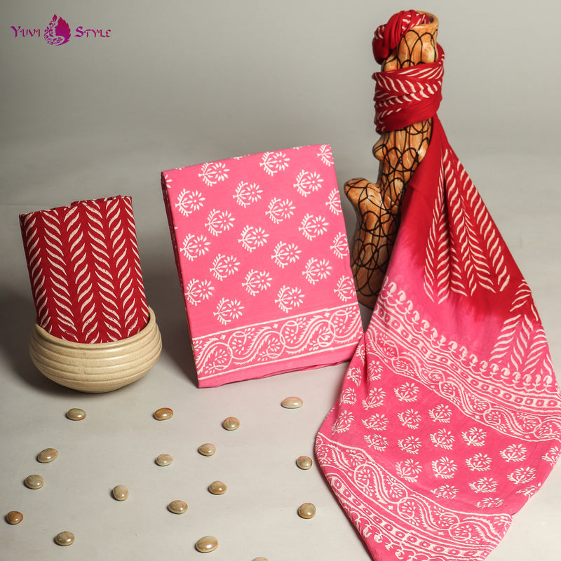 YUVI STYLE HAND BLOCK PRINT PURE COTTON SUIT WITH CHIFFION DUPTTA (PCHFYS123)
