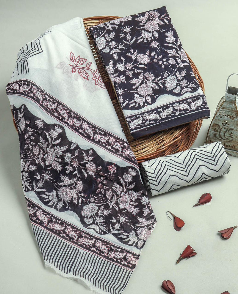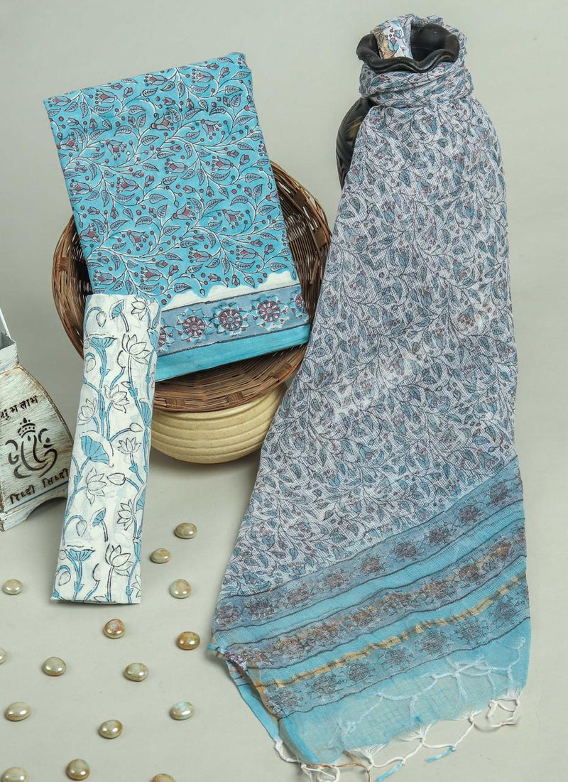 EXCLUSIVE HAND BLOCK PRINT PURE COTTON SUIT MATERIAL WITH KOTA DORIA DUPATTA (3CKDYS89)