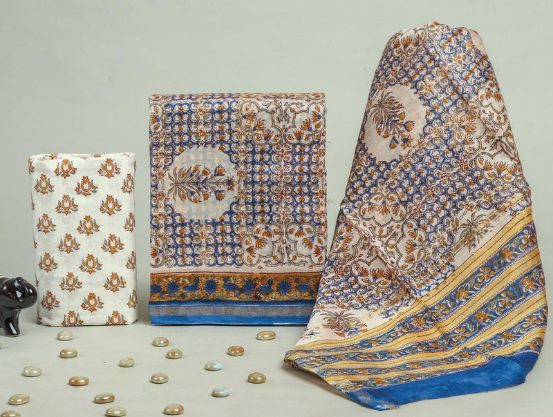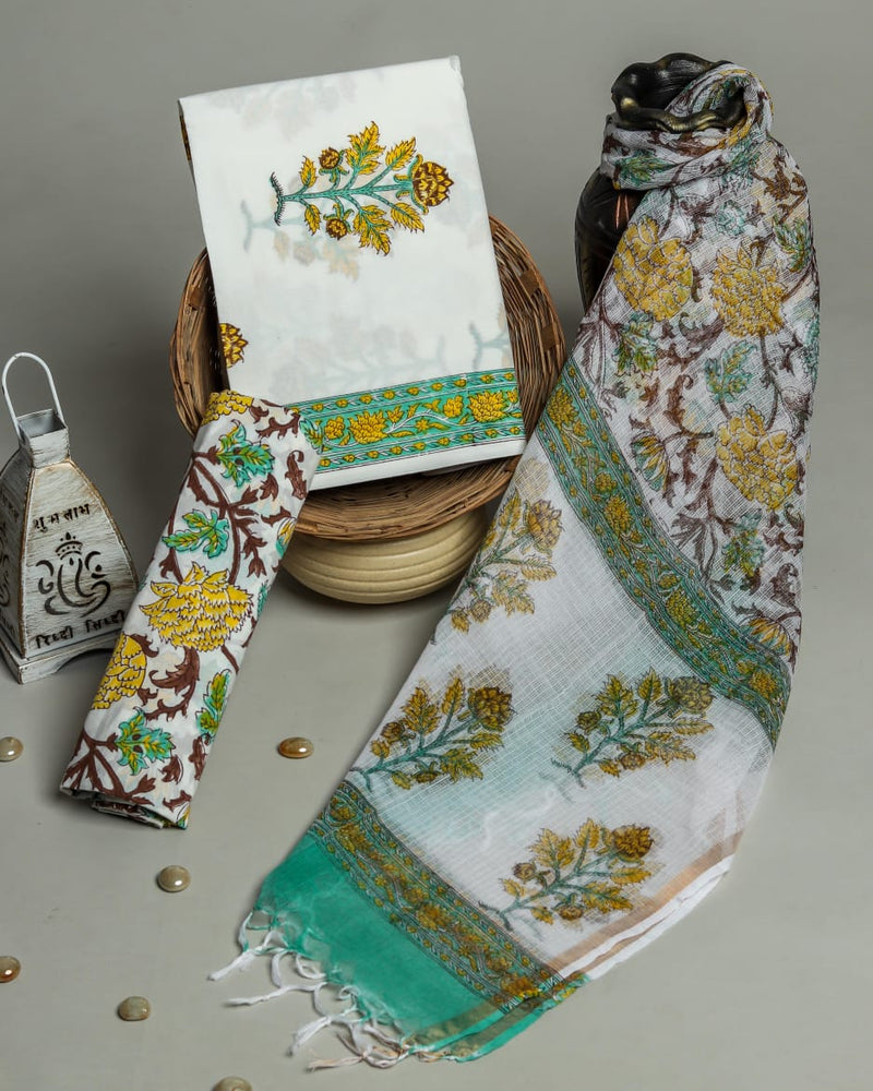 DESIGNER HAND BLOCK PRINT SUIT MATERIAL WITH KOTA DORIA DUPATTA (3CKDYS152)