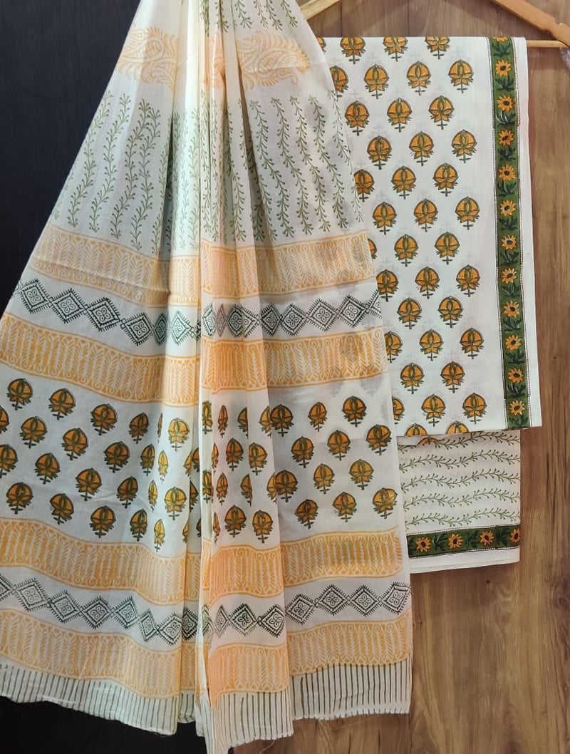TRADITIONAL HAND BLOCK PRINT PURE COTTON SUIT WITH DORIA DUPATTA(3CKDYS144)