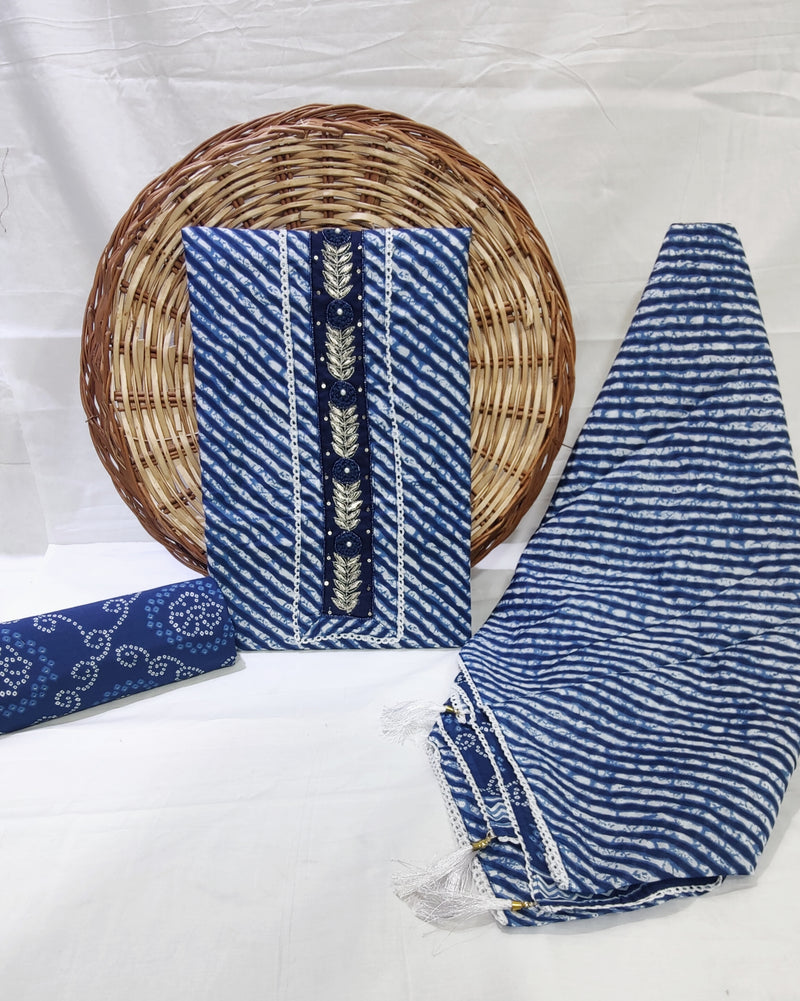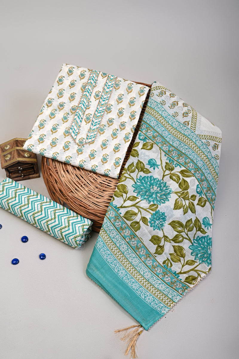 SANGANERI PRINT COTTON SUIT MATERIAL WITH MULMUL DUPATTA NECK WORK (GOTAYS141)