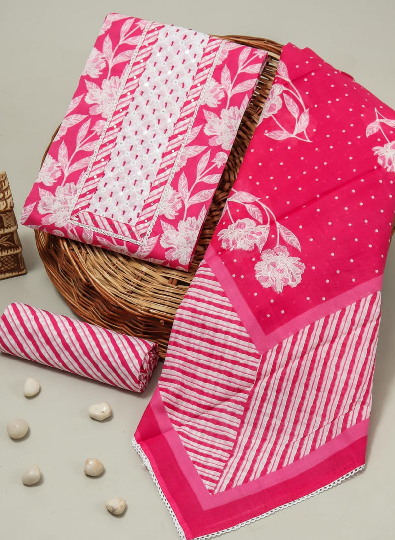 SANGANERI PRINT COTTON SUIT MATERIAL WITH COTTON DUPATTA HAND WORK (GOTAYS119)