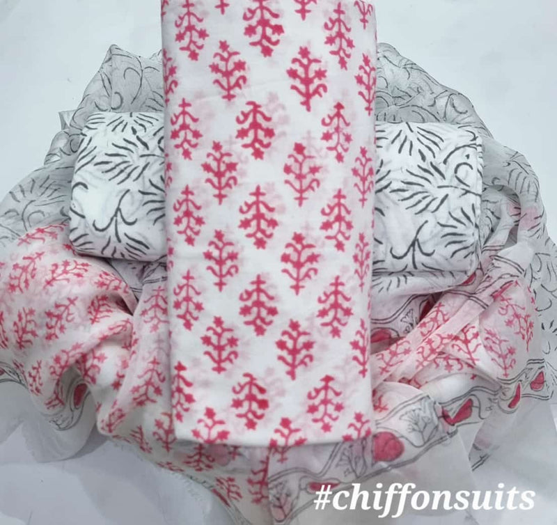 DESIGNER HAND BLOCK PRINT PURE COTTON SUIT WITH CHIFFON DUPATTA (PCHFYS183)