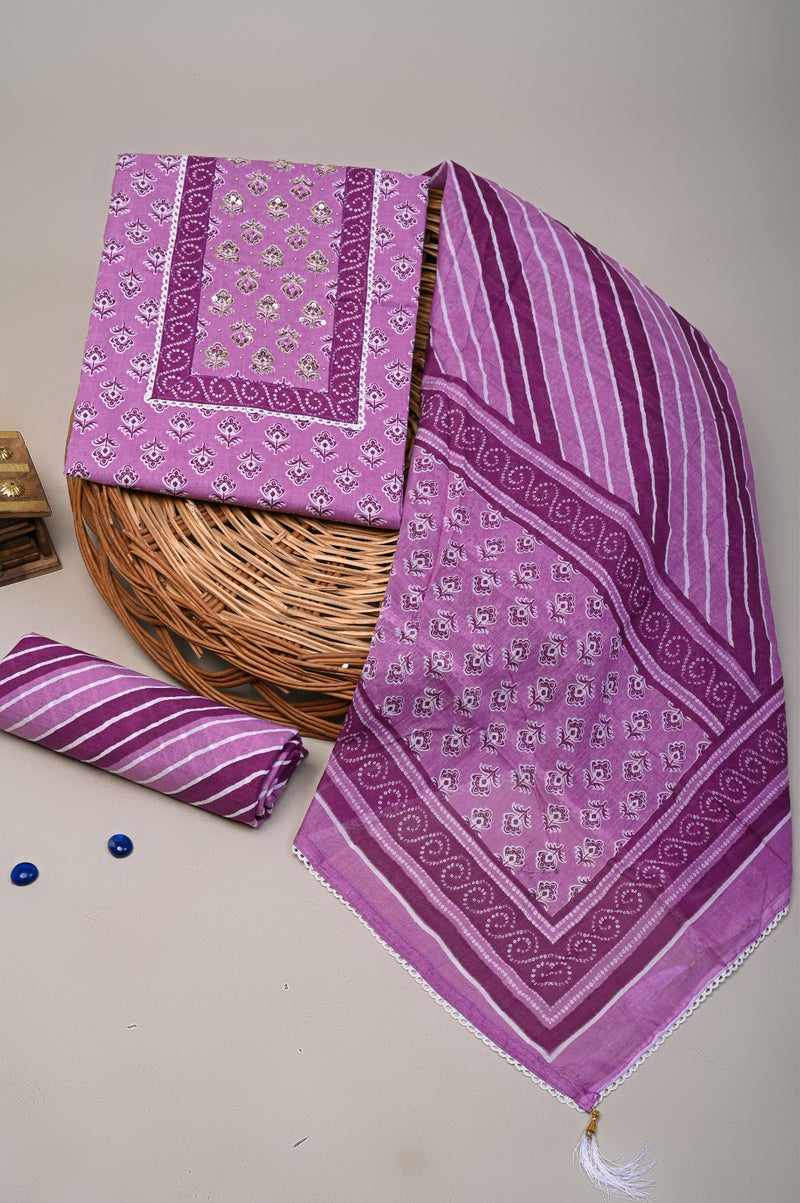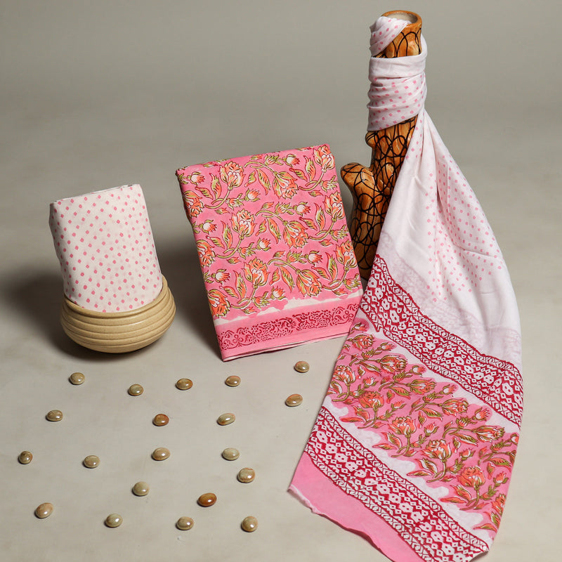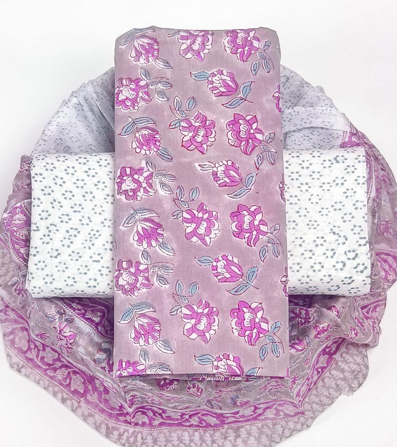 SANGANERI PRINT COTTON SUIT MATERIAL WITH CHIFFION DUPATTA NECK WORK (GOTAYS155)