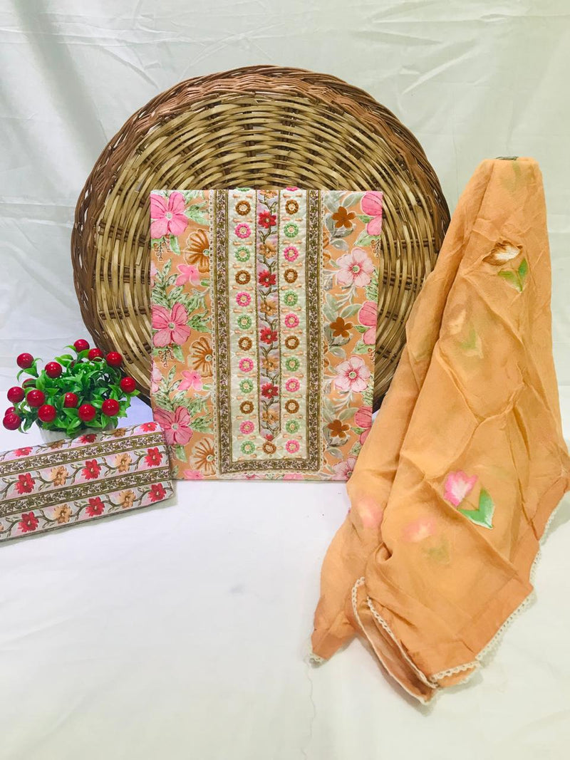 Designer Pure Cotton Suit with Chiffon Dupatta (PCHFYS94)