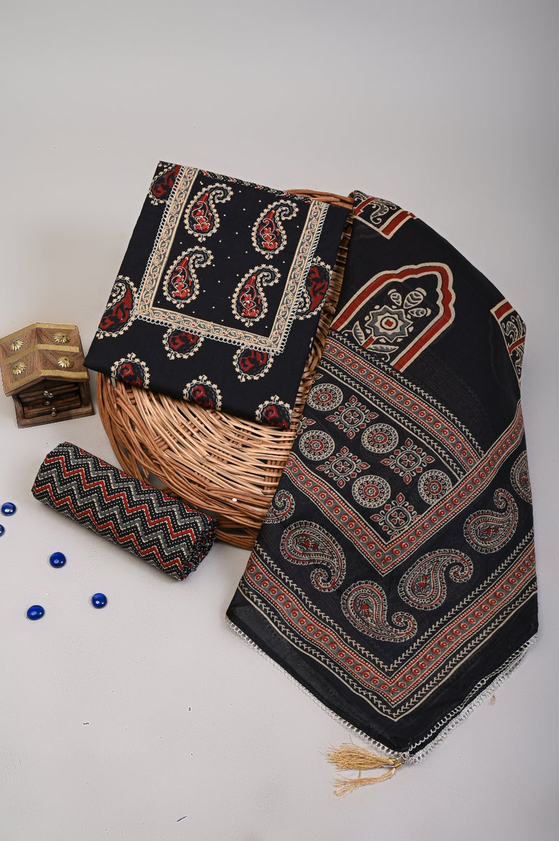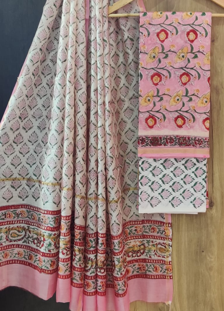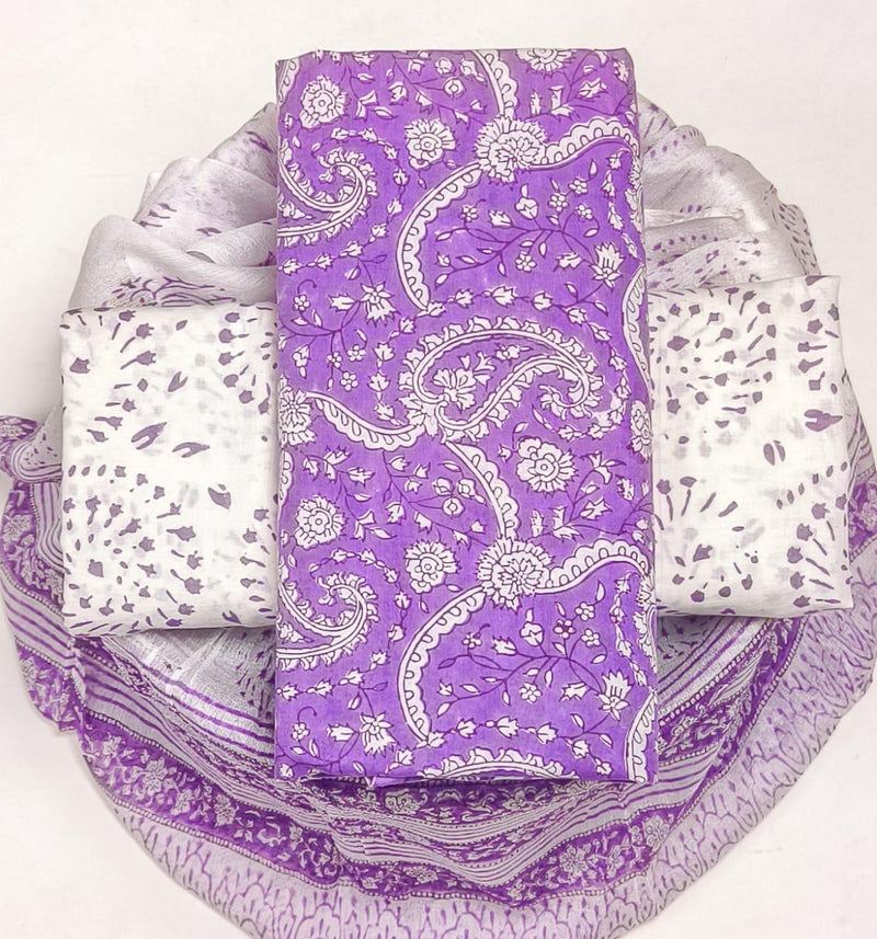 EXCLUSIVE HAND BLOCK PRINT PURE COTTON SUIT WITH COTTO MULMUL DUPATTA (MALYS223)