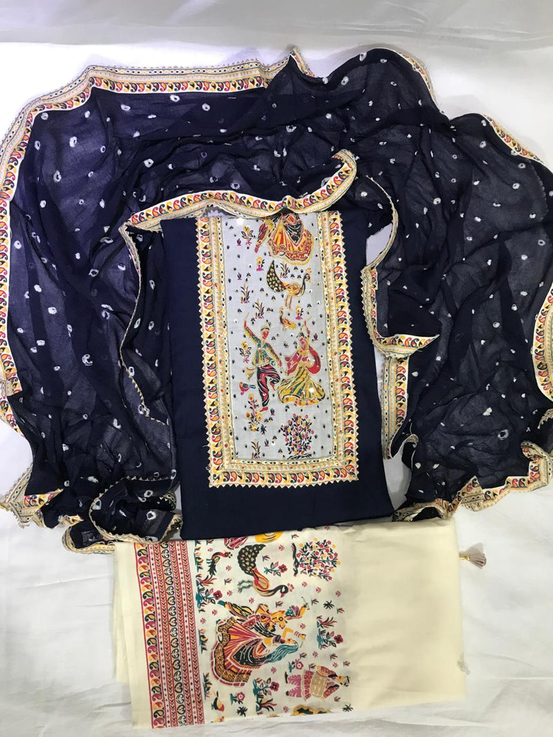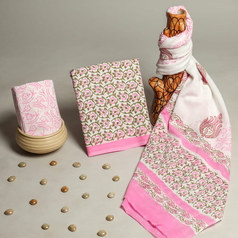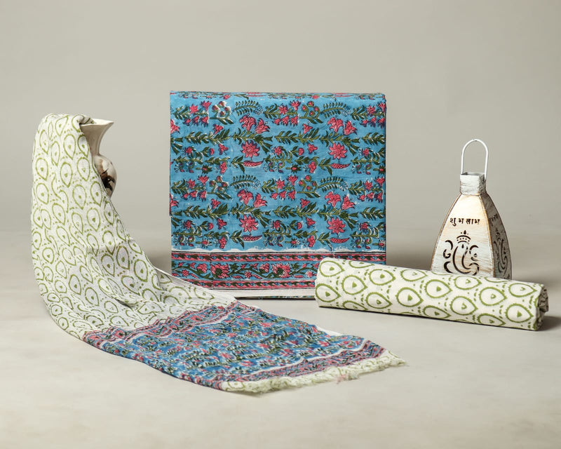 Sanganeri print cotton suit material with Cotton Dupatta Hand work (GOTAYS108)