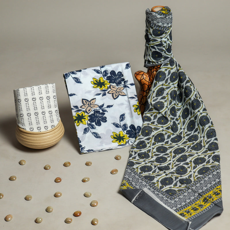 Sanganeri print cotton suit material with cotton dupatta neck work (GOTAYS51)