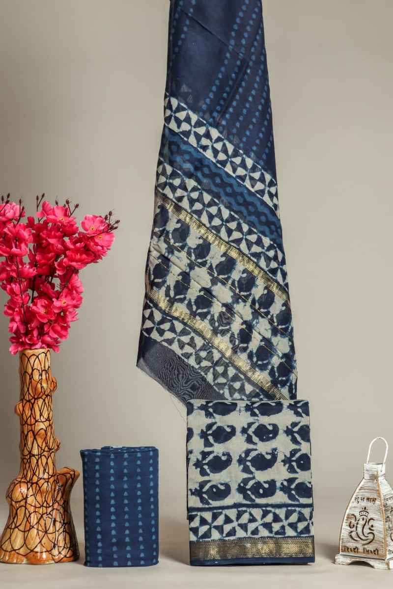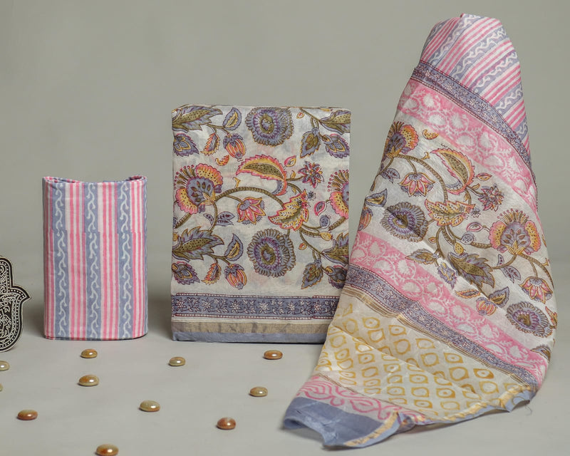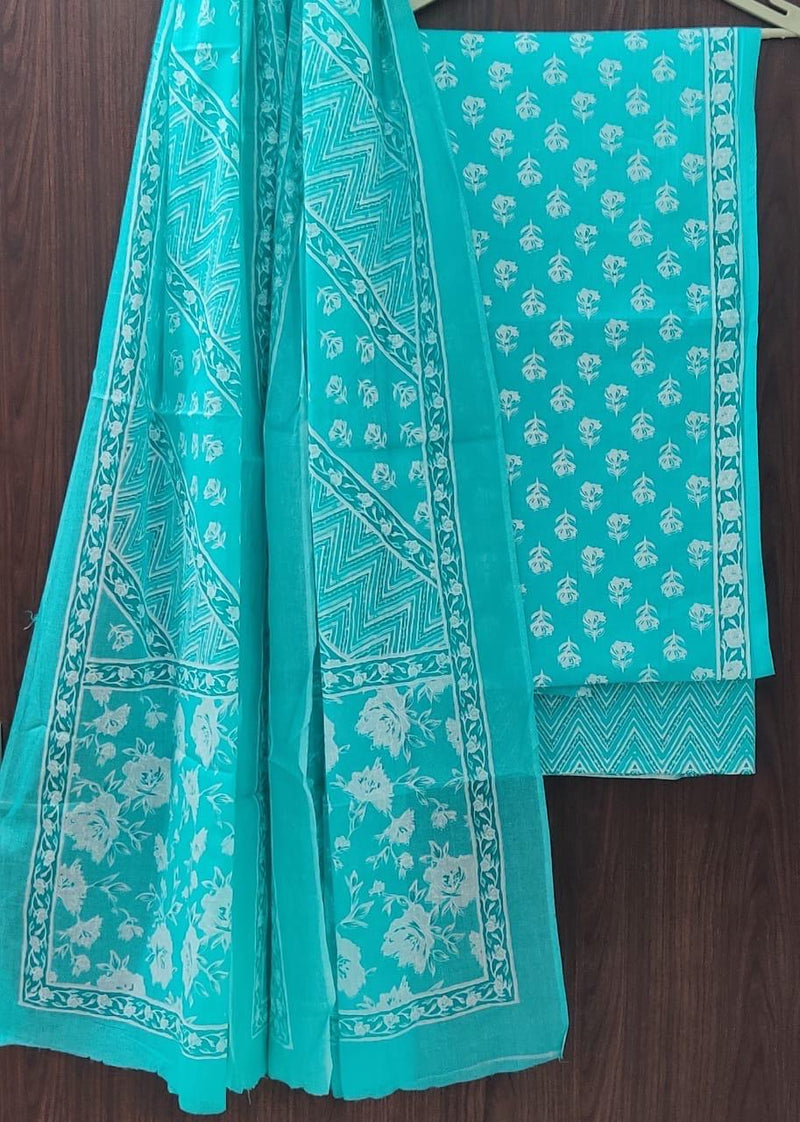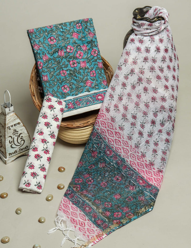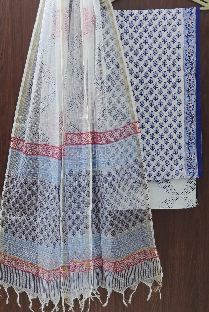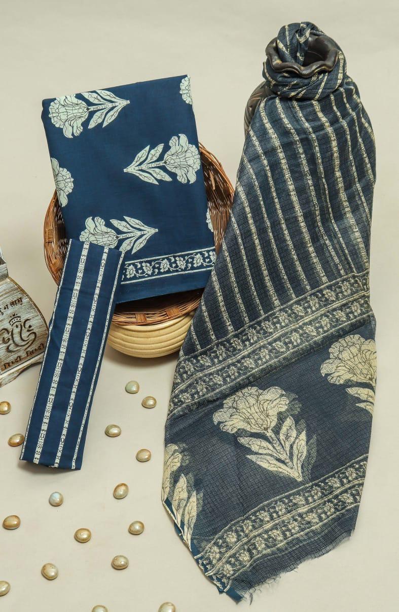 EXCLUSIVE HAND BLOCK PRINT PURE COTTON SUIT MATERIAL WITH KOTA DORIA DUPATTA (3CKDYS90)