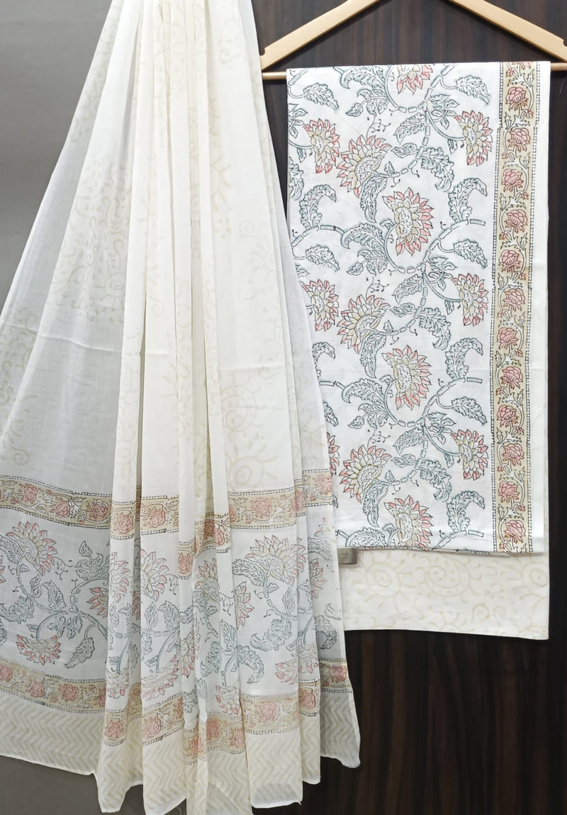 ELEGAT HAND BLOCK PRINT COTTON SUIT SET WITH MULMUL DUPATTA (MALYS300)
