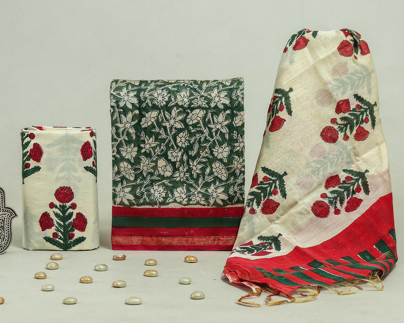 TRADITIONAL HAND BLOCK CHANDERI SILK SUIT SET WITH CHANDERI DUPATTA (CHDYS121)