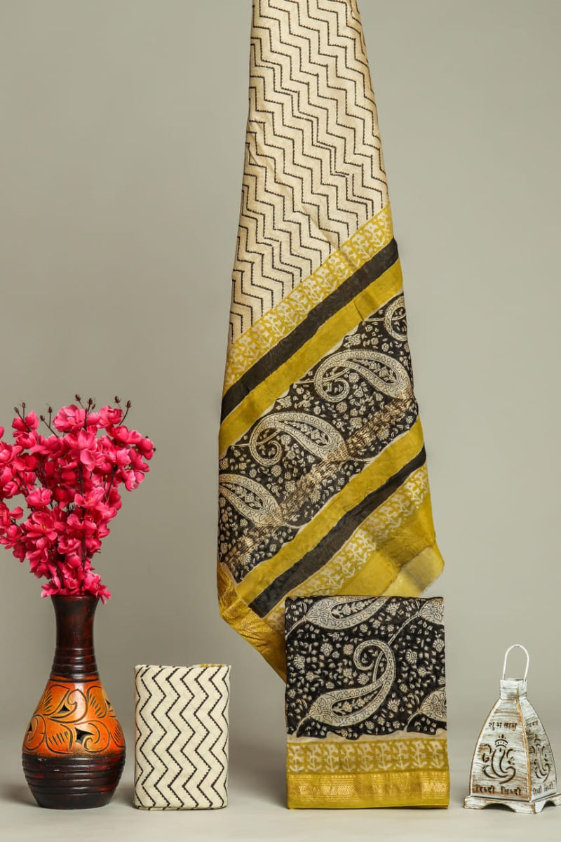 Designer Hand Block Print Maheshwari Silk Suit Set (MSLYS07)