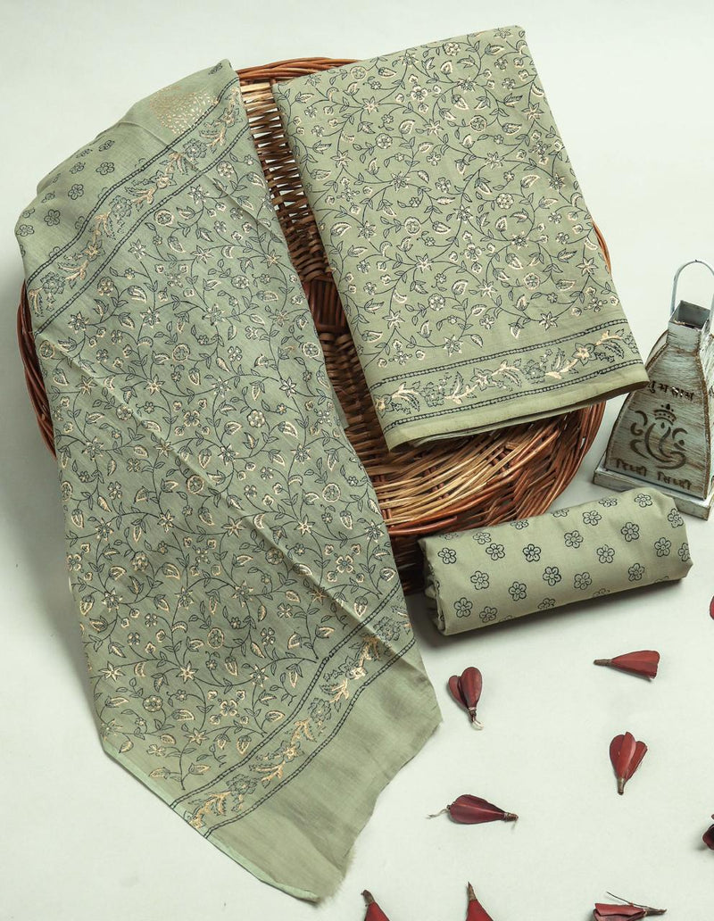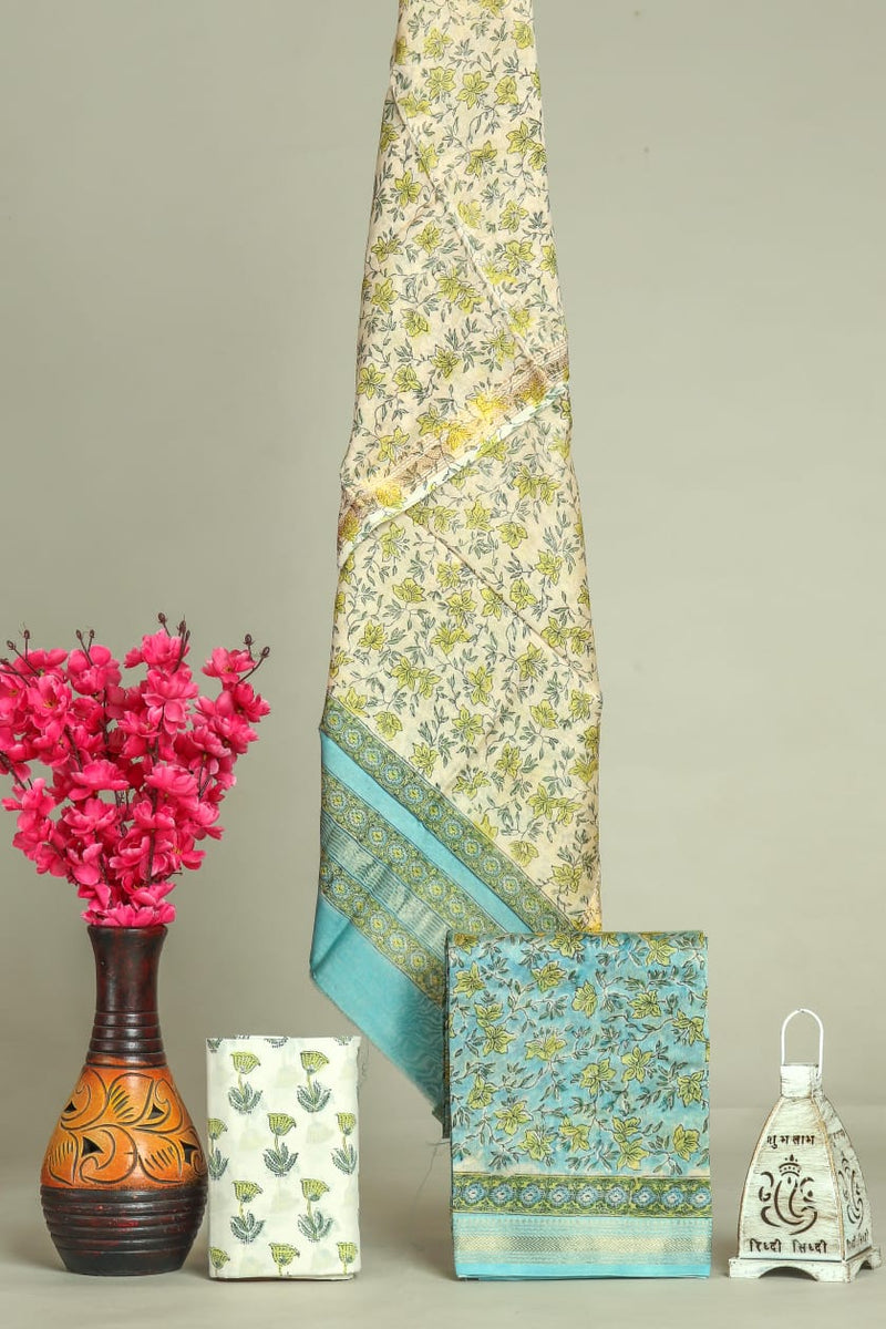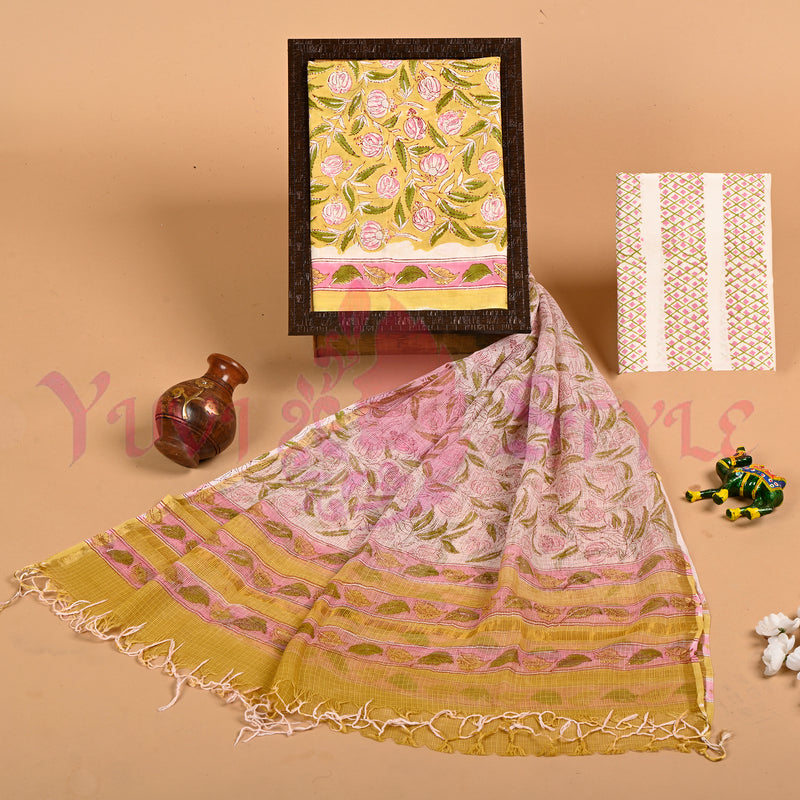 Designer Hand Block Print Pure Cotton Suit Material with Kota Doria Dupatta(3CKDYS14)