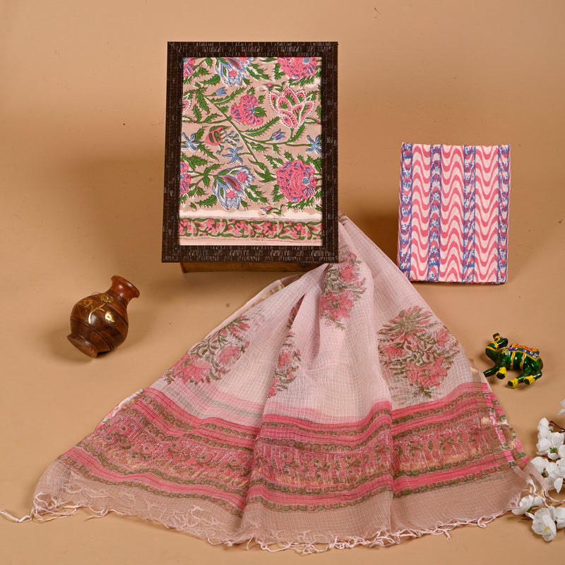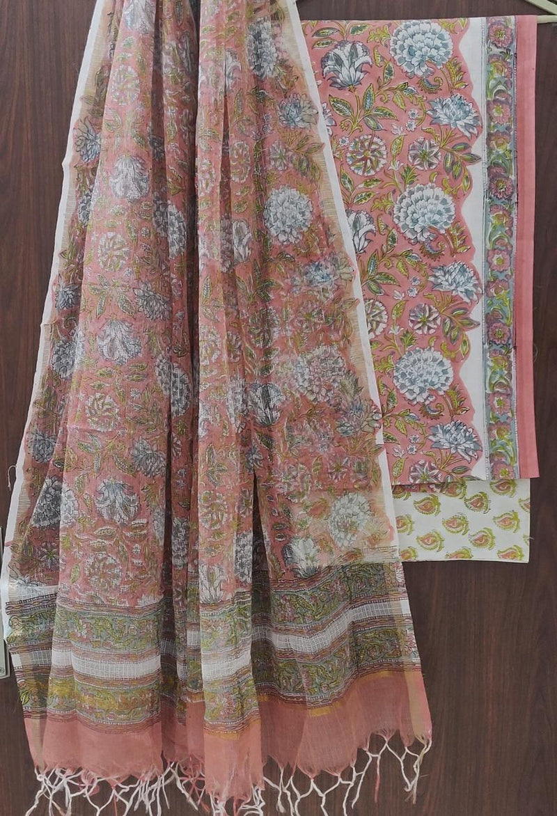 Designer Hand Block Print Pure Cotton Suit Material with Kota Doria Dupatta(3CKDYS04)