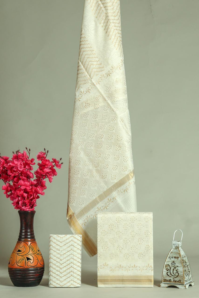 ELEGANT HAND BLOCK CHANDERI SILK SUIT SET WITH CHANDERI DUPATTA (CHDYS197)