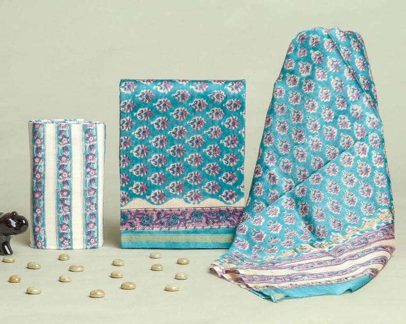 Products TRADITIONAL HAND BLOCK CHANDERI SILK SUIT SET WITH CHANDERI DUPATTA (CHDYS106)