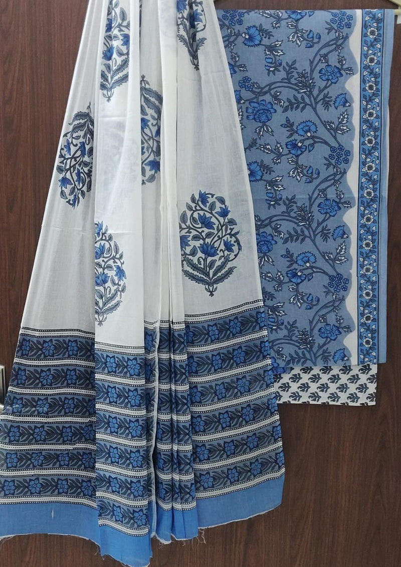 FLORAL HAND BLOCK PRINT PURE COTTON SUIT WITH DORIA DUPATTA(3CKDYS165)
