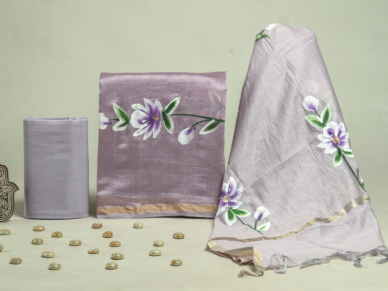 NATURAL HAND BLOCK PRINT CHANDERI SILK SUIT SET WITH CHANDERI DUPATTA (CHDYS93)
