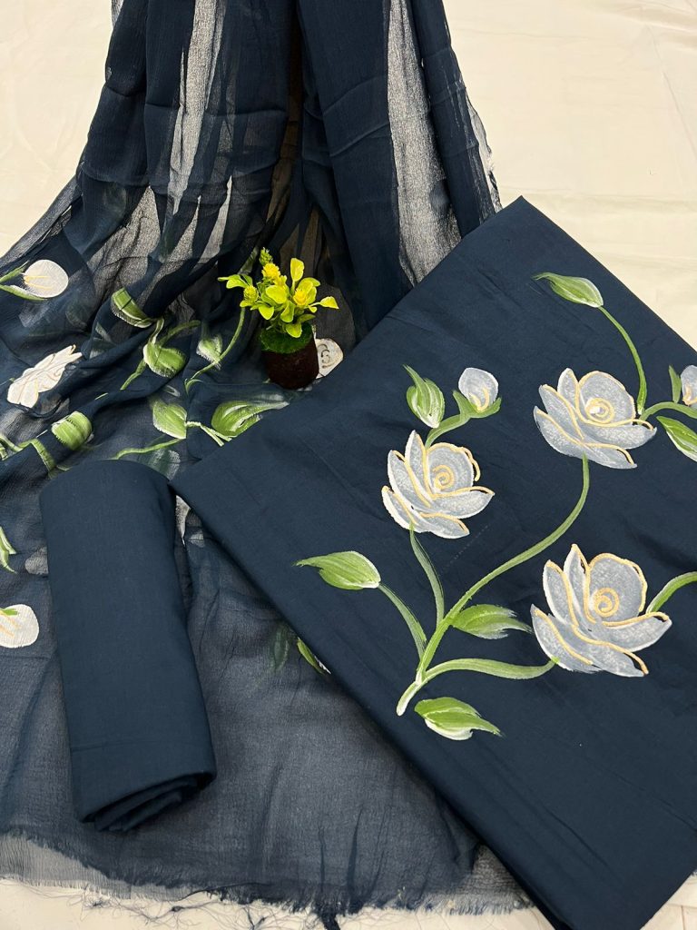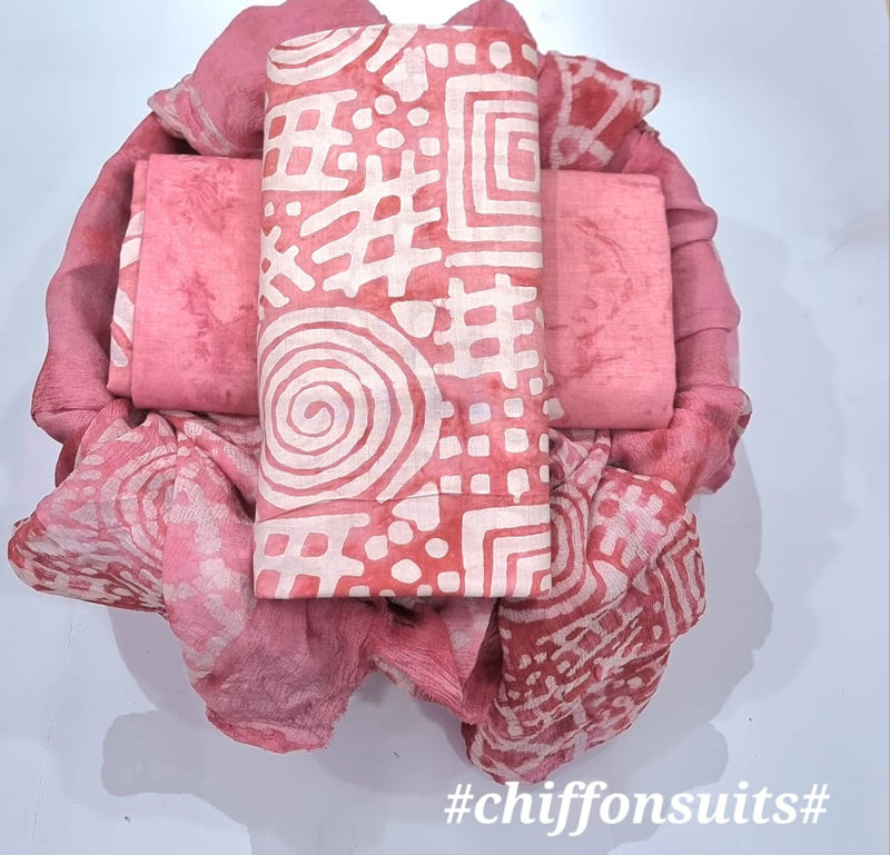 ELEGANT HAND PRINTED PURE COTTON SUIT WITH CHIFFION DUPTTA (PCHFYS130)