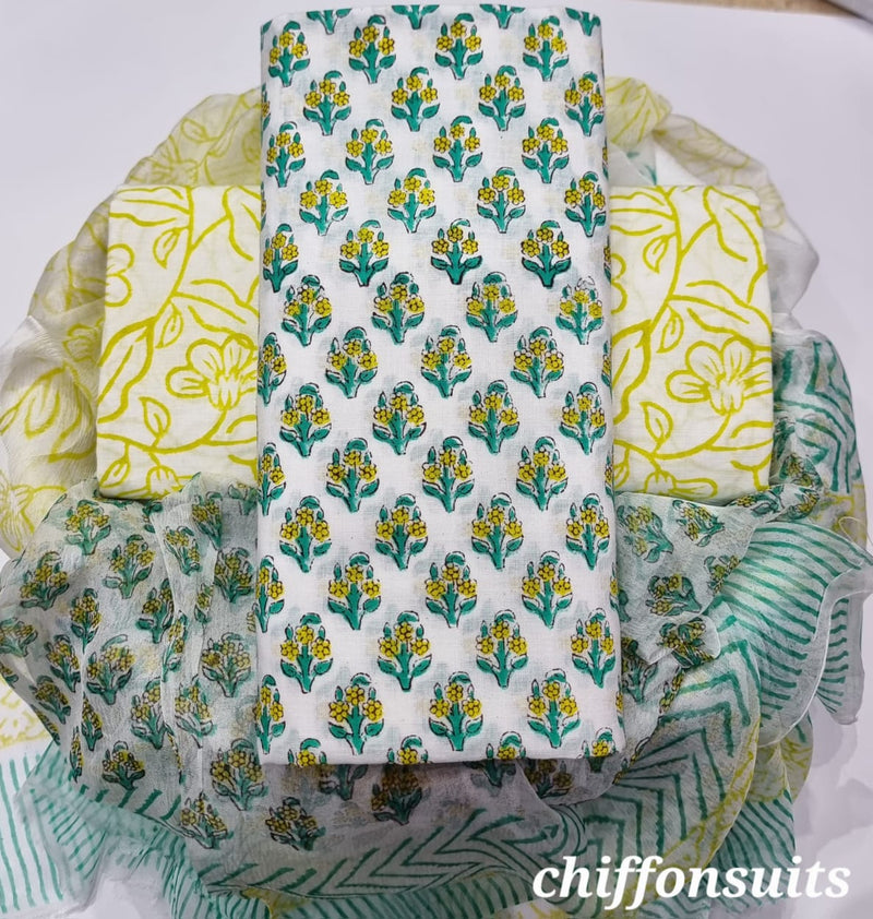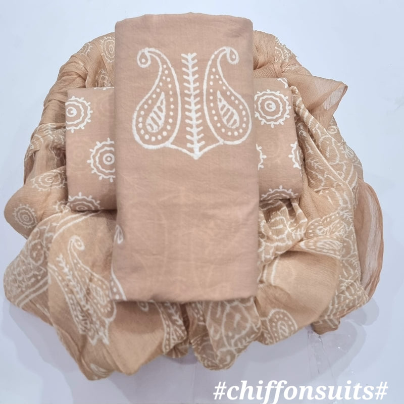 HAND BLOCK PRINT COTTON SUIT WITH CHIFFION DUPTTA (PCHFYS95)