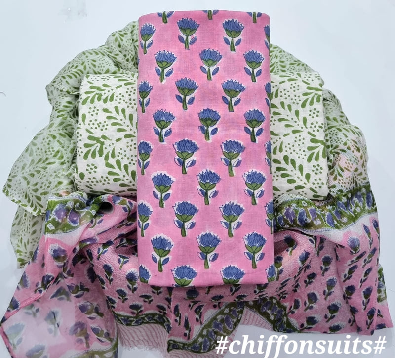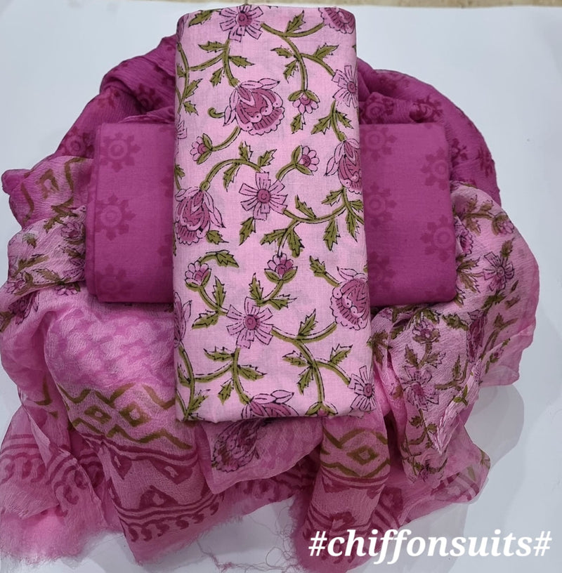 HAND BLOCK PRINT PURE COTTON SUIT WITH CHIFFION DUPTTA (PCHFY87)