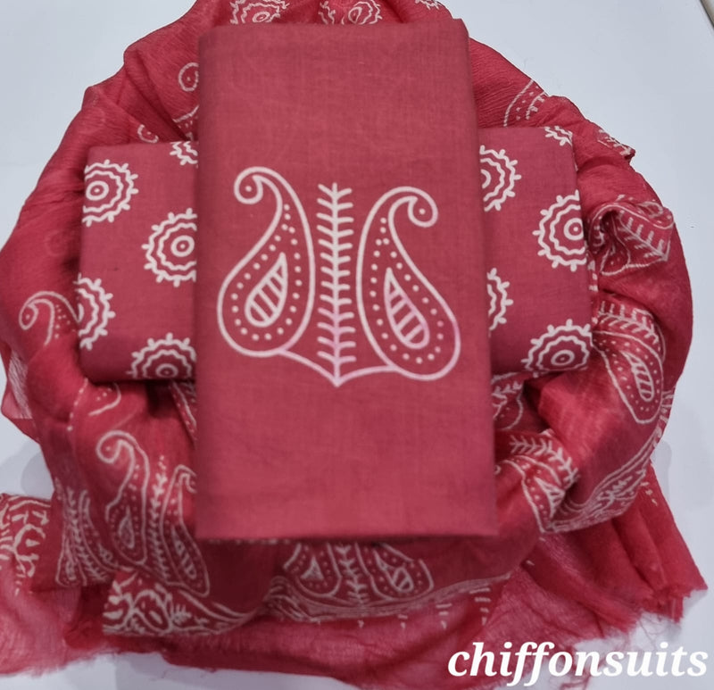 HAND BLOCK PRINT PURE COTTON SUIT WITH CHIFFION DUPTTA (PCHFY86)