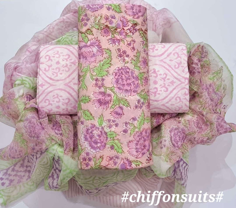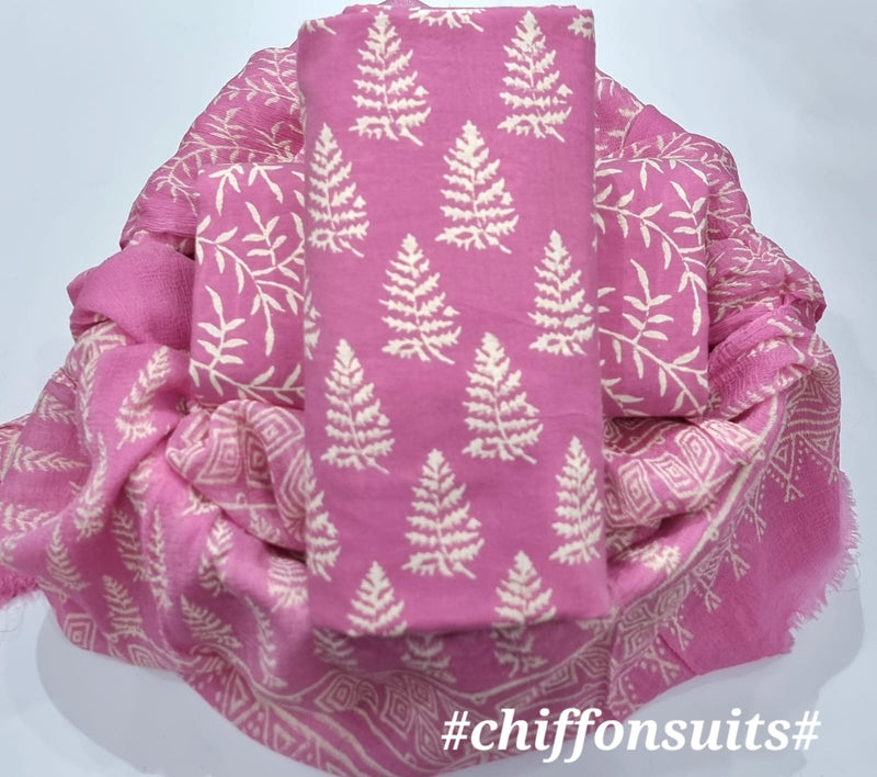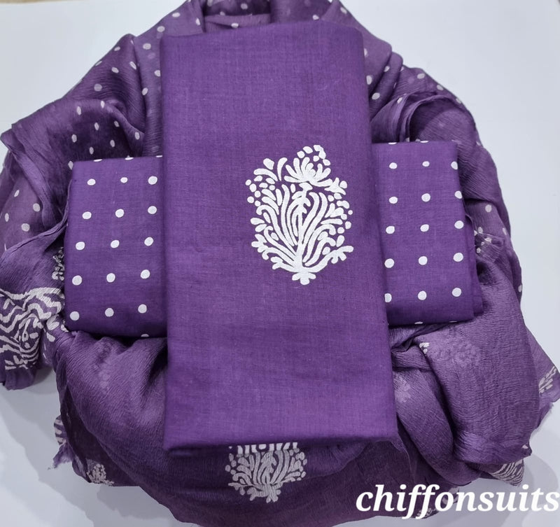 Elegant Hand Block Print Pure Cotton Suit With Chiffion Duptta (Pchfys66)