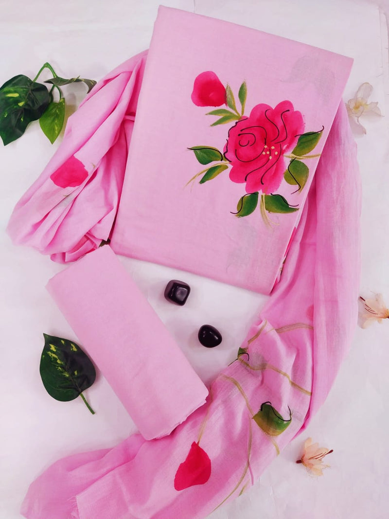 Designer Pure Cotton Suit with Chiffon Dupatta (PCHFYS18)
