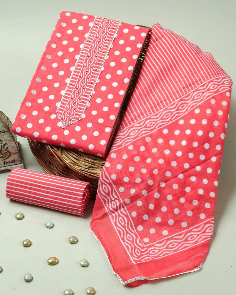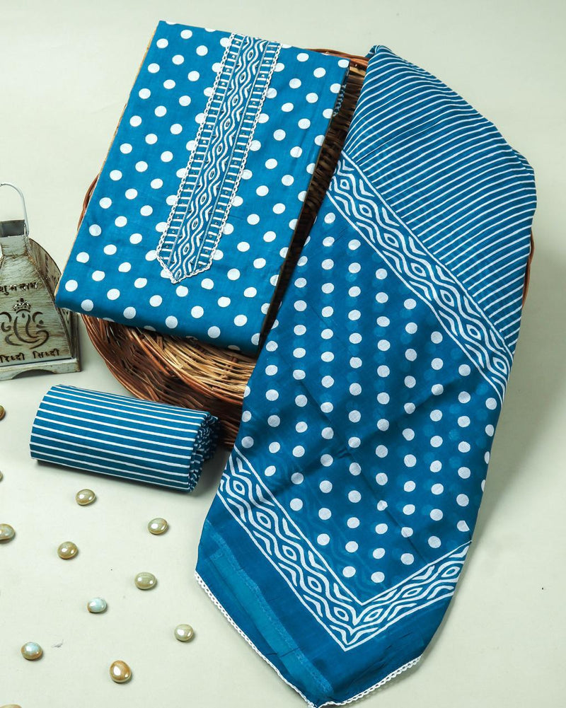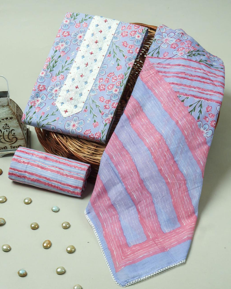Sanganeri Print Cotton Suit Material With Mulmul Dupatta Hand work (GOTAYS107)