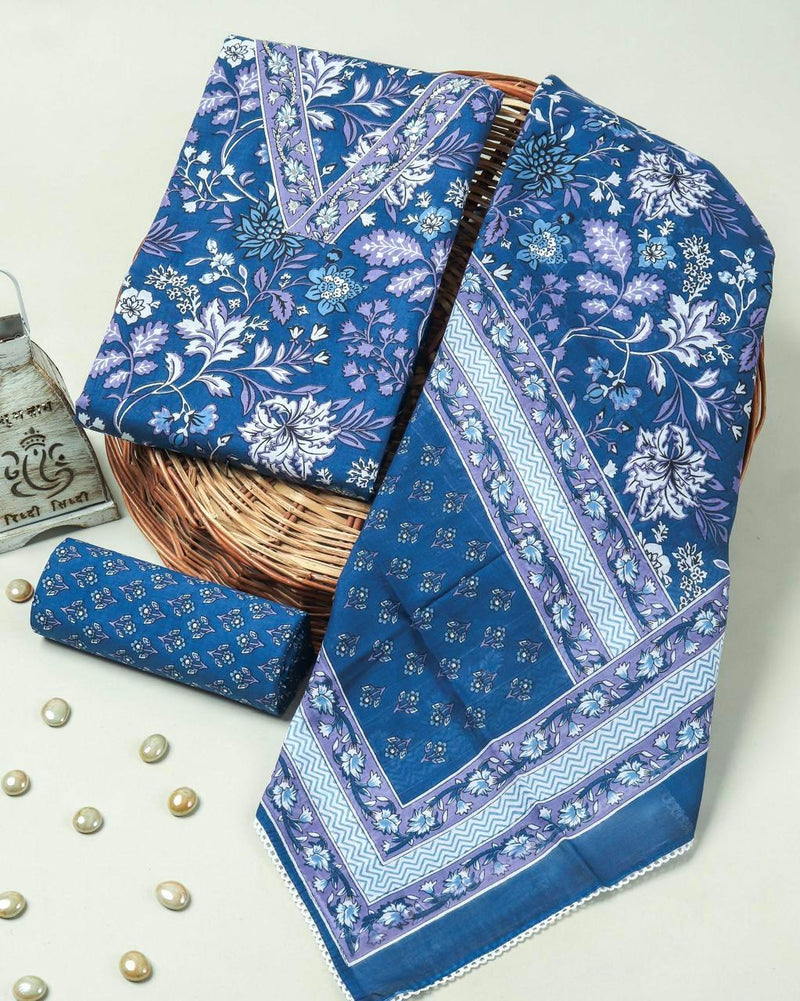SANGANERI PRINT COTTON SUIT MATERIAL WITH COTTON DUPATTA NECK WORK (GOTAYS139)