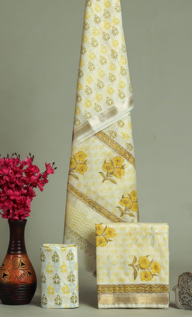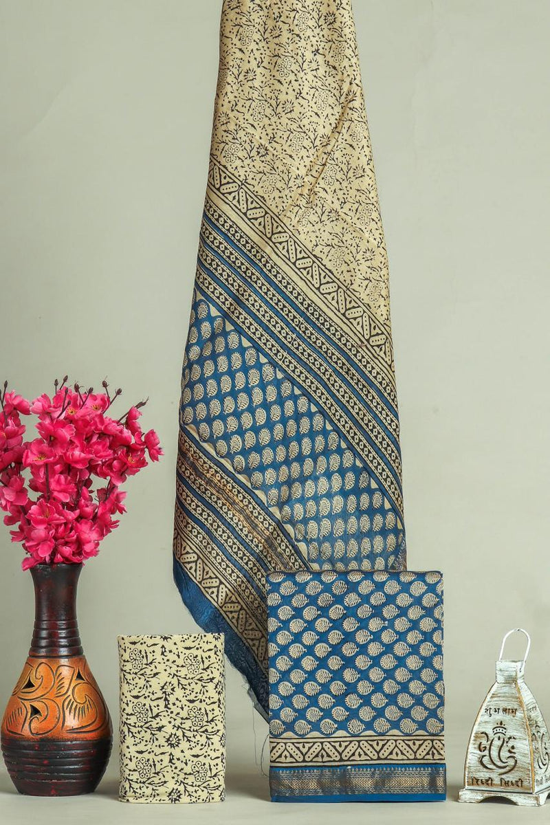 Designer Hand Block Print Maheshwari Silk Suit Set (MSLYS07) Sale priceRs. 2,799.00 Regular priceRs. 4,999.00