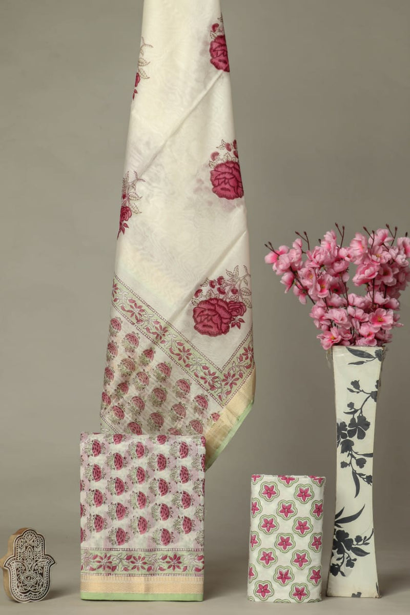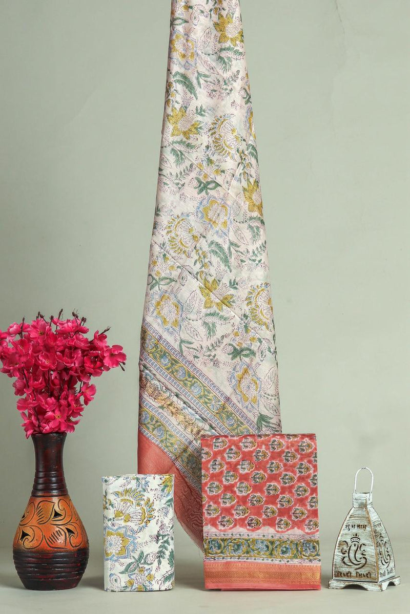 Save 44%DESIGNER HAND BLOCK PRINT MAHESHWARI SILK SUIT SET (MSLYS39)