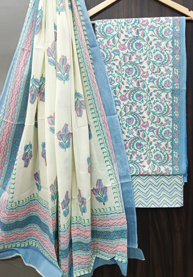 YUVI STYLE HAND BLOCK PRINT PURE COTTON SUIT WITH COTTO MULMUL DUPATTA (MALYS253)