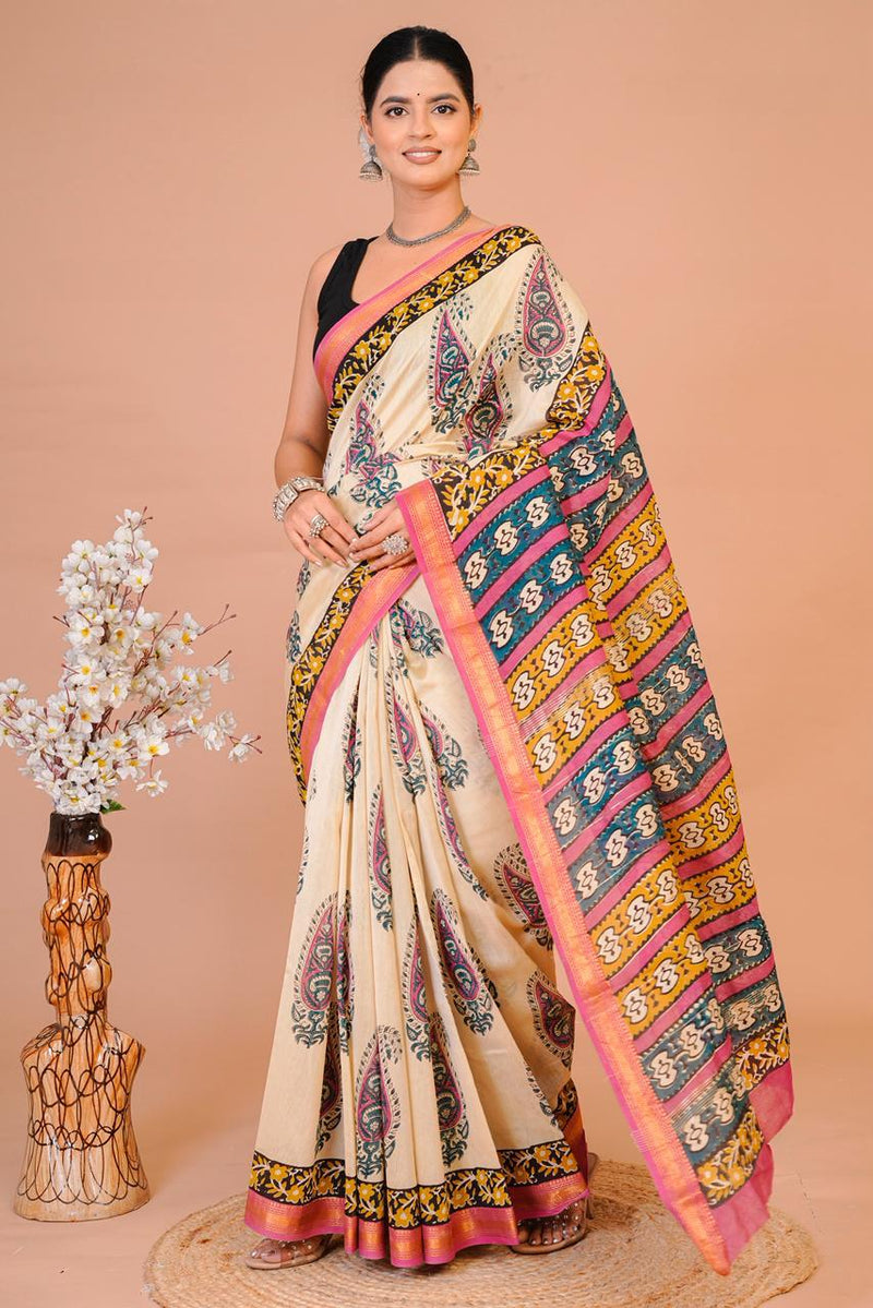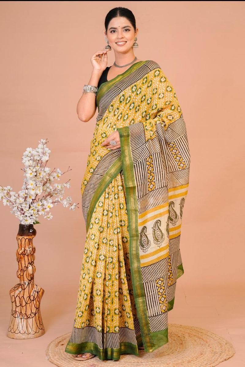 DESIGNER HAND BLOCK PRINTED MAHESWARI SILK SAREE ( MSYS21)