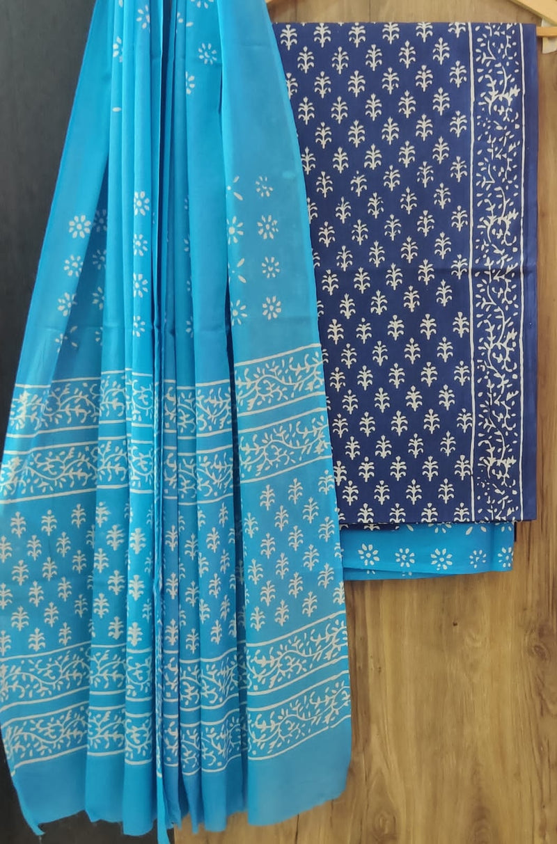 DESIGNER HAND BLOCK INDIGO PRINT PURE COTTON SUIT WITH COTTON MULMUL DUPATTA (MALYS40)