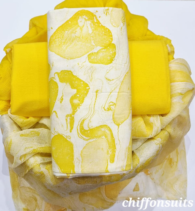 Designer Pure Cotton Suit with Chiffon Dupatta (PCHFYS94)