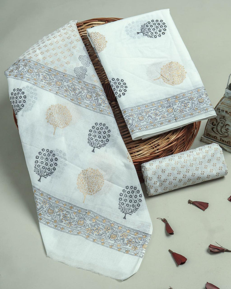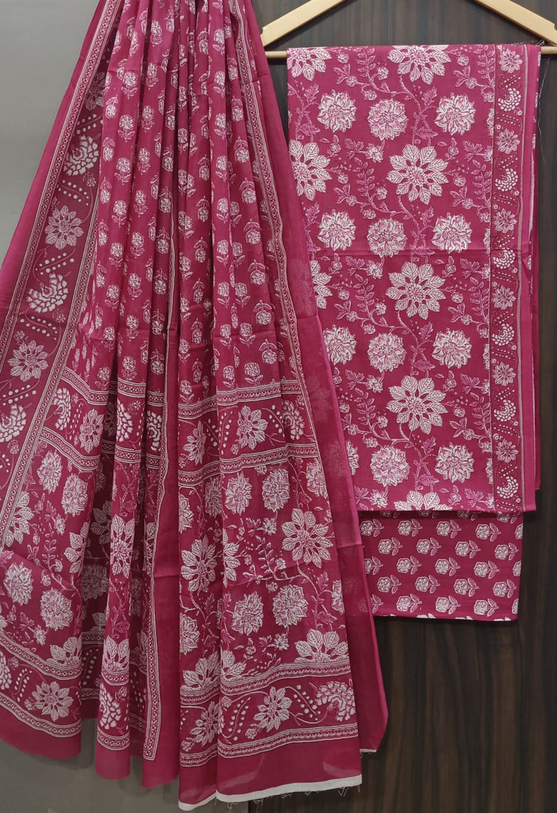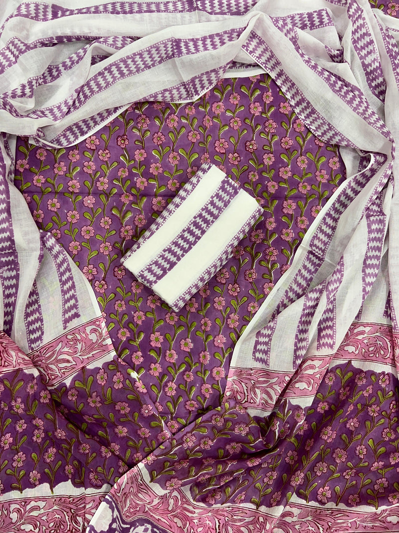FLORAL HAND BLOCK PRINT PURE COTTON SUIT WITH DORIA DUPATTA(3CKDYS153)