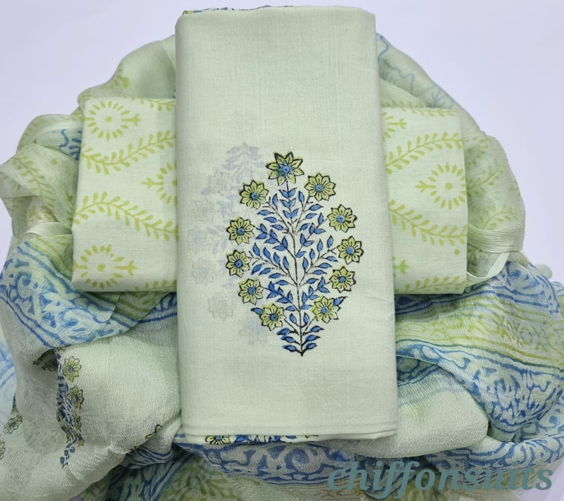 Yuvi Style HAND BLOCK PRINT PURE COTTON SUIT WITH CHIFFION DUPTTA (PCHFYS168)