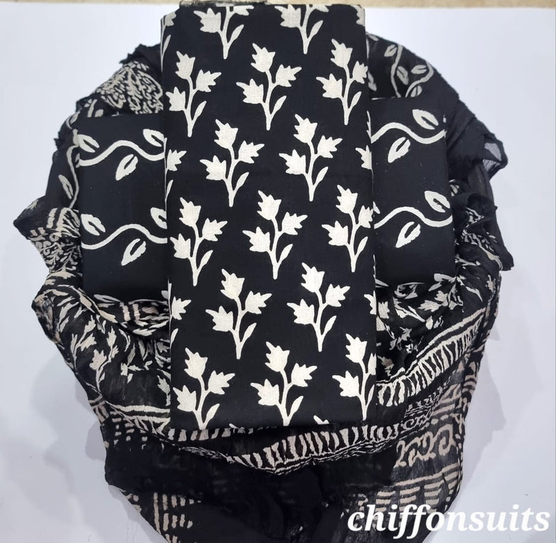 DESIGNER HAND BLOCK PRINT PURE COTTON SUIT WITH CHIFFON DUPATTA (PCHFYS145)