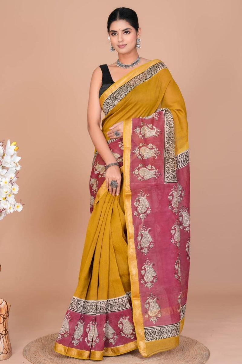DESIGNER HAND BLOCK PRINTED MAHESWARI SILK SAREE ( MSYS08)