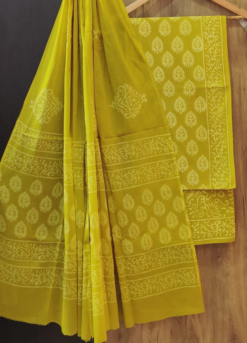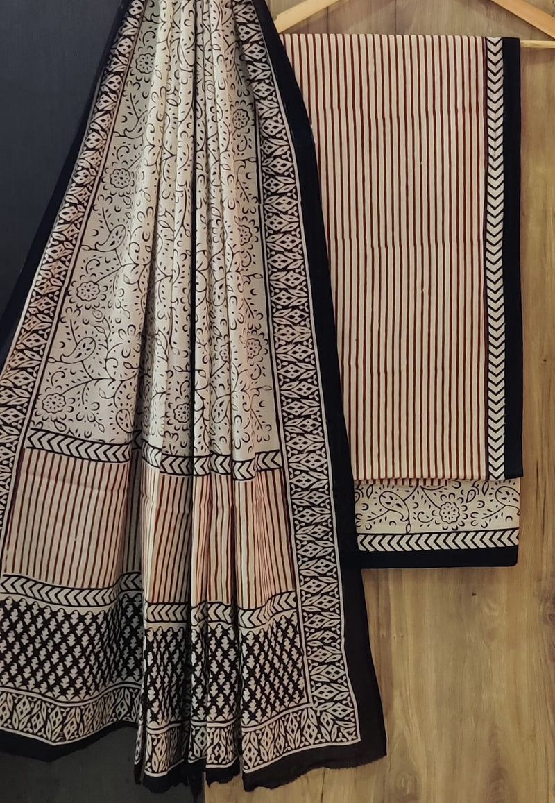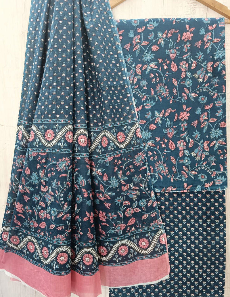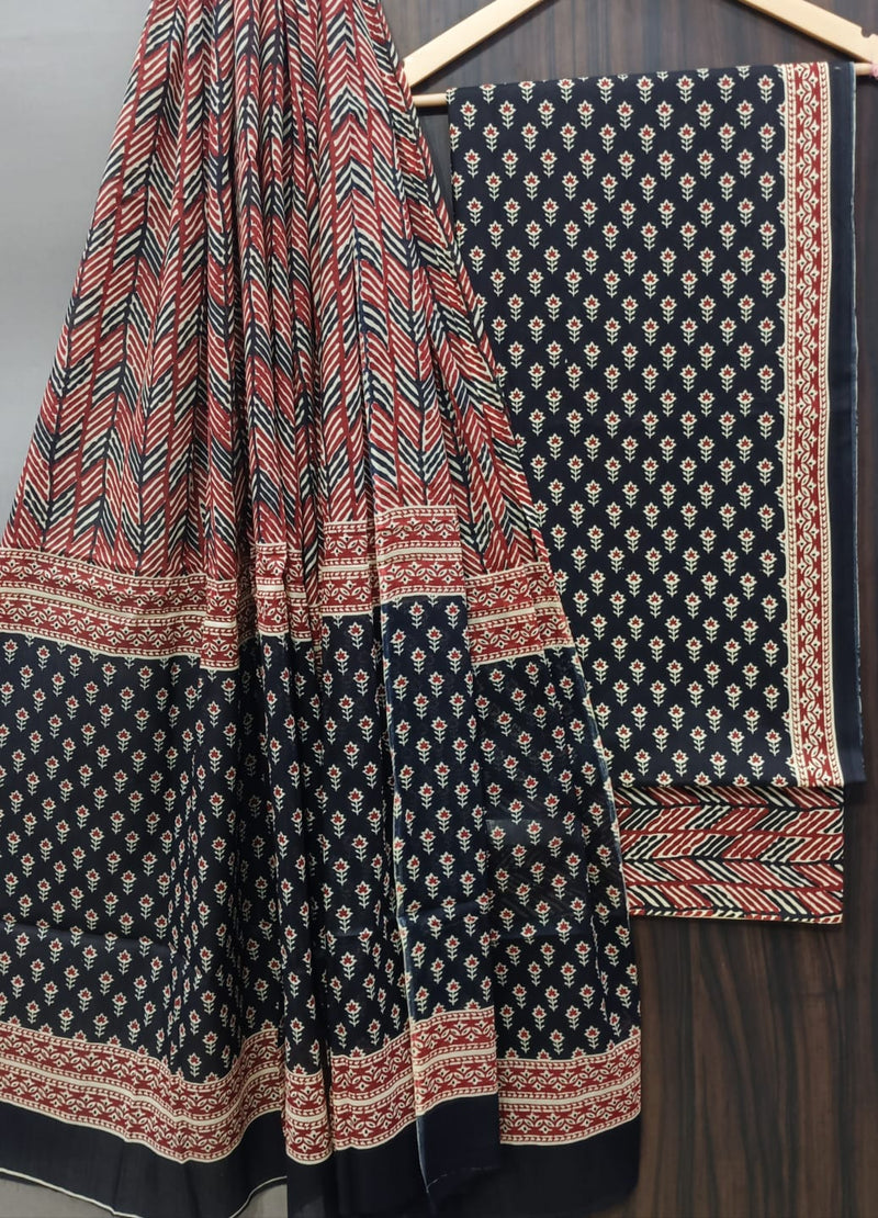 Designer Hand Block Print Pure Cotton Suit with Cotton Mulmul Dupatta (MALYS03)