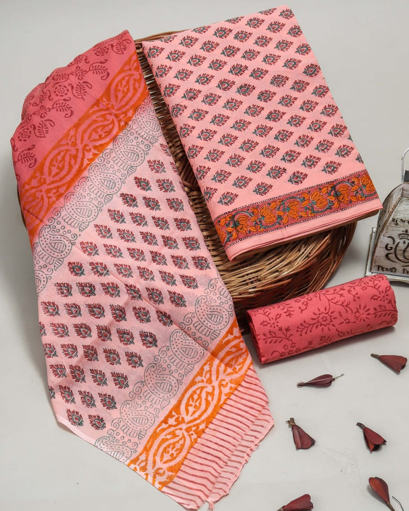 DESIGNER HAND BLOCK PRINT PURE COTTON SUIT WITH COTTON MULMUL DUPATTA (MALYS42)